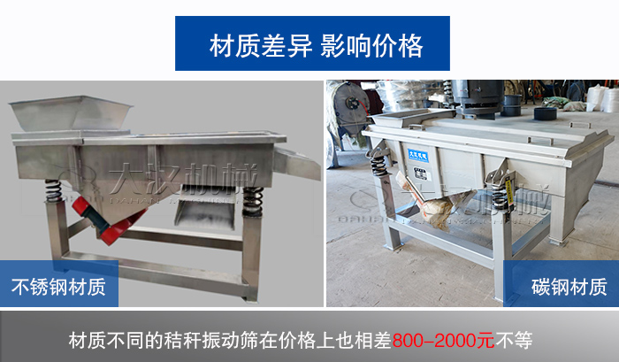 養(yǎng)殖場飼料篩分直線振動(dòng)篩主要有碳鋼與不銹鋼兩種,材質(zhì)不同的秸稈振動(dòng)篩在價(jià)格上也相差800-2000元不等。