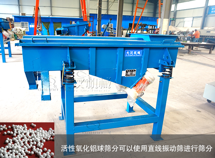 活性氧化鋁球為白色球狀多孔性顆粒,粒度均勻,表面光滑,機械強度大,吸濕性強,粒徑通常為1mm-10mm,根據活性氧化鋁球的物料特性和基本篩分環境要求參考,直線振動篩是可以用來篩分活性氧化鋁球的。