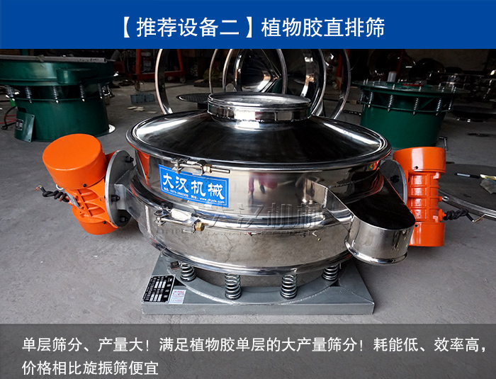 總結(jié):針對(duì)以上植物膠所用振動(dòng)篩,需要過多層篩網(wǎng)進(jìn)行分級(jí)的您就旋振篩;簡單篩分過濾,追求大產(chǎn)量的您就可以選擇直排篩。