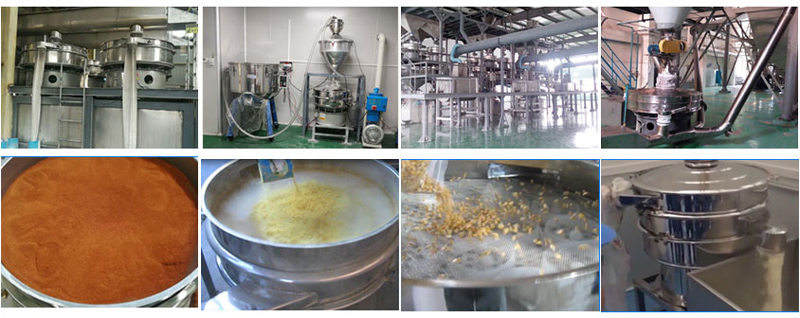 應用:面粉、淀粉、中藥粉、果汁、豆漿、大米、中藥粉、小麥等小產量,衛生要求高的物料篩分